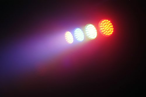 - 6-channel DMX-512 LED beam effect system Individual control of red, green, blue, and white LEDs within each light (4 total) Light source: 228 (48 red, 72 green, 72 blue, 36 white) (57 per light) Adjustable strobe speed Built-in automated programs operate in DMX mode Built-in sound activated programs operate in master/slave or DMX modes Fits onto most standard 1-3/8" tripods Safely mounts to truss with clamps (sold separately) Razor-sharp rotating beams Independent positioning of each light Low-pSee more technical details