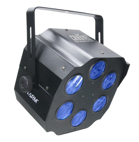 The Swarm is a wildly colorful, four-channel DMX-512 LED effect light with adjustable strobe speed for any of its seven color combinations produced by a total of 9W of LED. Motor direction and speed control are also adjustable. Additional features include built-in automated and sound-activated programs via master/slave or DMX.